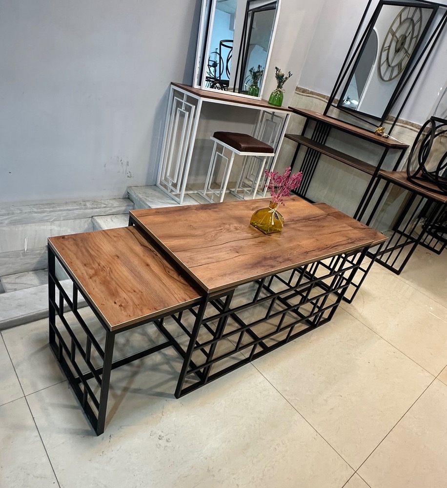 میز جلومبلی چوب و فلز طرح آجری